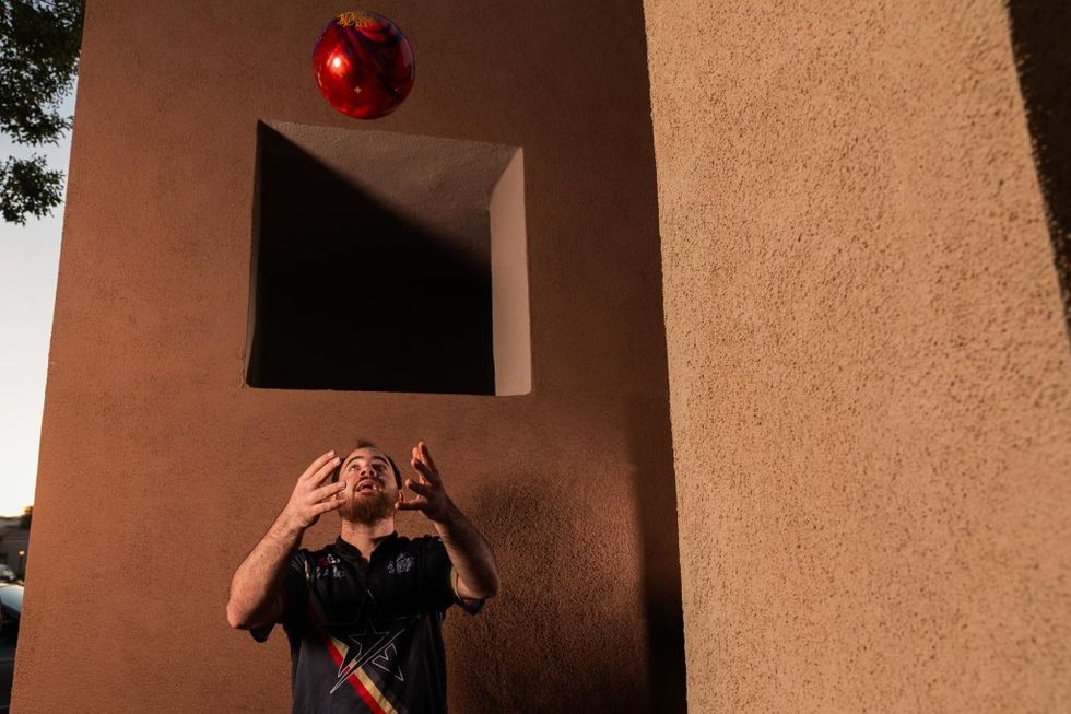 Simonsen, a.k.a. Simo, is a 27-year-old high school dropout and, depending on who you ask, currently the best bowler alive. Raised in Mesquite, Texas, and now living here in Vegas, Simonsen is coming off one of the most successful years in PBA Tour history, the first bowler ever to finish in the top 10 in every tournament and crack the top four in every major. Simonsen took home three tournament wins in 2023, including a back-to-back victory at the Masters, one of bowling’s five annual major tournaments, outside Detroit, culminating in a viral celebration that saw Simonsen flex a pair of Buffs — Cartier Buffalo Horn sunglasses, the holy grail of Motor City fashion — on live TV. The $100,000 Masters title added to Simonsen’s seven-figure PBA winnings total, and made him the youngest bowler ever to win one, two, three, four, and now five majors.