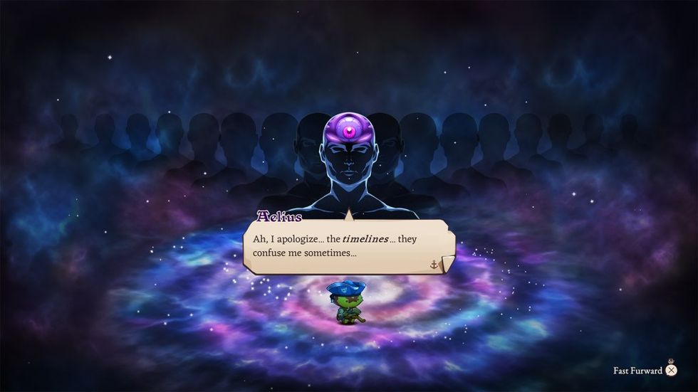 The story is still gibberish, with a thinly written plot that centers on a heroic kitty of destiny chasing MacGuffins to ultimately square off against “God.” It’s an old RPG trope that the series uses as its framework for each installment, but it works here thanks to the game’s more facetious tone. Like the previous games, Cat Quest III exists in its own timeline alongside the other tales, all bound together by ominously faceless gods — the creators (humans) — whose secretive workings will lead to a multidimensional convergence known as the “Apawcalypse” in the eventual Cat Quest IV. It’s all cheeky nonsense, woven together through light pop culture parody and feline-based puns peppered throughout the dialogue.