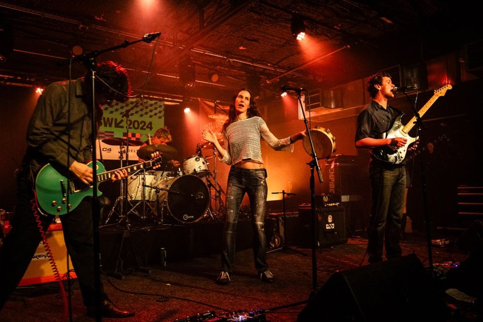 A little after midnight at Mohawk, Thus Love were giving it their all. The Brattleboro, Vermont, band is getting a reputation for memorable live shows, and you could see why right away. Lead singer-guitarist Echo Mars strutted with a feral glam-rock energy, while she and her bandmates Ally Juleen, Shane Blank, and Lu Racine attacked their instruments with punk fury. At their last SXSW, Thus Love were a trio who temporarily lost one member to a crowdsurfing injury; this year, they came back bigger, better, and louder as a quartet. Careening around the stage and into each other as a light rain fell, they pummeled their way toward rock & roll nirvana. —S.V.L.