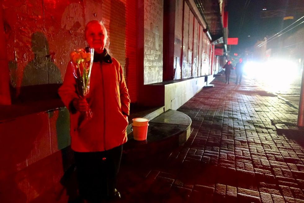 Her name is Galina Viktorovna, 72 years old, and in her buttoned-up raincoat, dress, and tight bun, she is the embodiment of the archetypical babushka. She’s been selling flowers in the street for seven years. Neither bombs nor blackouts will stop her.
