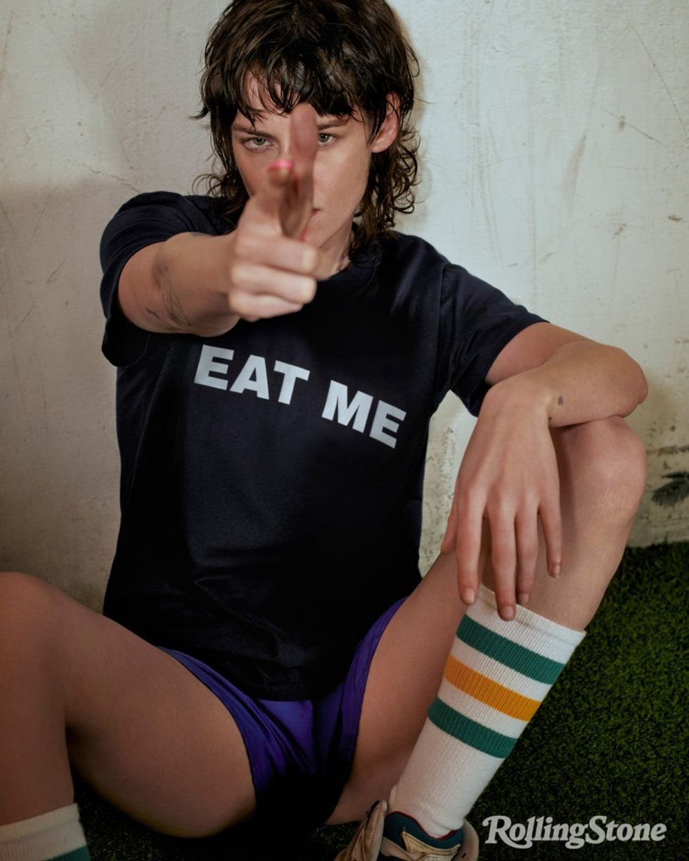 Of course, all of that was a long time ago. Stewart wanders over to the fridge and gets us another round. Here’s the thing: She’s grown up. That’s not who she is now. But also: In a way, it kind of is. As a queer woman in the public eye, she’s had occasion to think about identity, and what it all means. She’s considered the arc of things. “And it goes: Jodie [Foster], me, boygenius,” she says, plainly, of the spots she imagines they all hold on the queer-celebrity continuum. “I’m in the middle. Do you know what I mean? Jodie had such a hard time [as a gay actor], and I’m not speaking for her — I am objectively analyzing the time and place in which she was being her, and that is not easy — I would say fucking near-impossible if you wanted to continue doing what you love.