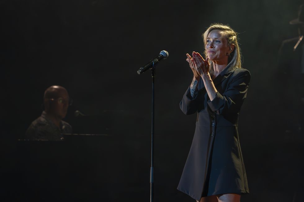 Dans une facture plus intimiste, Safia Nolin a offert un moment de grâce lors de sa livraison sentie de S’il suffisait d’aimer, qu’elle a dédiée à la Palestine. (Pour monter un spectacle de 90 minutes, les interprètes ont débordé de l’album D’eux.) Sa voix déchirante se prête à merveille à cette chanson, durant laquelle les spectateurs ont fait brandir les lumières de leurs téléphones. Magistral.
